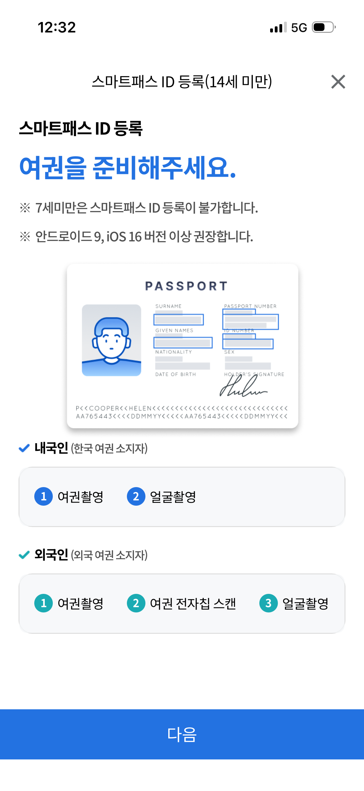 - 여권, 얼굴 정보, 탑승권을 미리 등록합니다